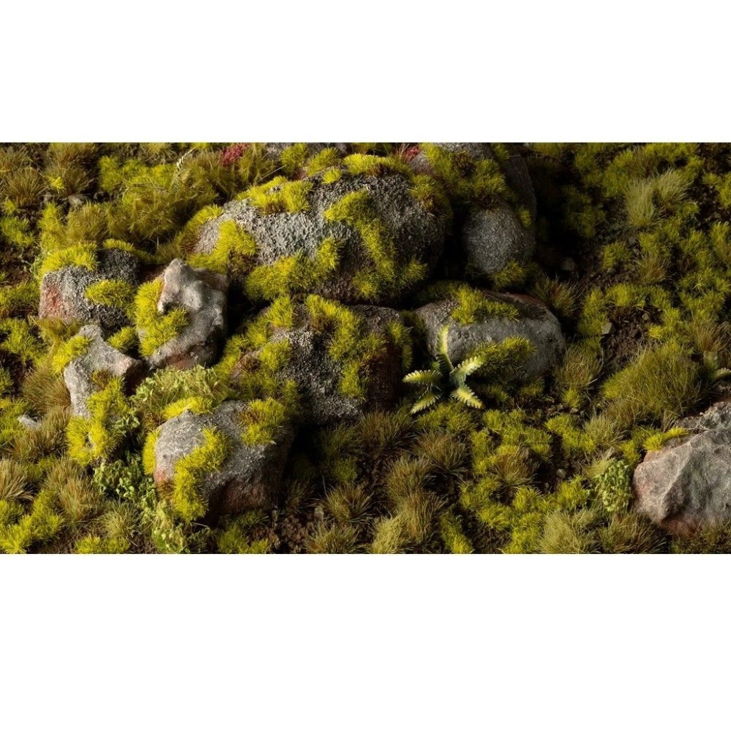 Low creeping tufts with a blend of vivid greens perfect to simulate a large range of mossy habitats and wet grasslands. In combination with other colors and sizes they provide a fascinating color and height variation to your scenes.
