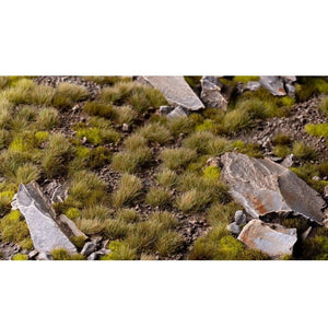 Slightly brownish green tufts. Best used to simulate Mediterranean types of prairies, steppes, low scrubs and woodland ground layers, when some drier climate character is wanted. Also perfect to increase colour variation to your scenes, when mixed with other colours and sizes.