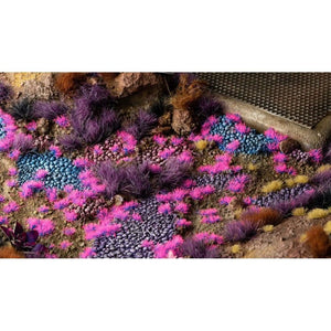 Tiny and low tufts with blue and pink colors mixed together, suggesting an odd glow. Perfect to create alien, fantasy, or magic scenarios. Used together with Alien Neon tufts, they provide a diversity of shapes and sizes, giving a fantastic detail to your bases and models. Also recommended for tiny scales.