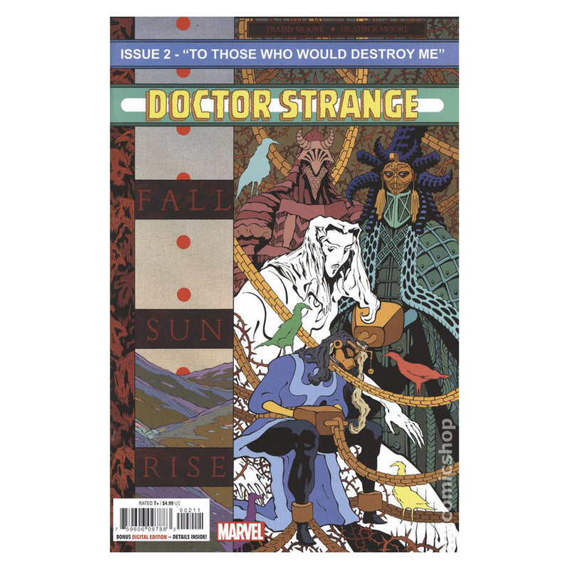 Doctor Strange joins forces with an all-new set of mystical heroes! But the treacherous Knights of the Body mean to make corpses of them all! BEWARE! What fresh terror awaits our heroes in the masked city of Sanc Nistos? A red river runs through the barbed bowels of the Body Machine, and all we have to hold onto are fragments and fearful chances!