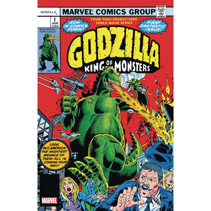 The King of the Monsters goes on the rampage in the Marvel Universe in this Facsimile representation of the first issue of the classic comic book! When Godzilla surfaces in Alaska and leaves a path of destruction, it naturally attracts the attention of Nick Fury and S.H.I.E.L.D.! But what can they possibly do to stop a towering, fire-breathing force of nature like Godzilla? Find out in a bold adventure of the legendary kaiju by a pair of industry titans: Doug Moench and Herb Trimpe! It's one of the all-time great Marvel comic books, boldly re-presented in its original form, ads and all! Reprinting GODZILLA (1977) #1.