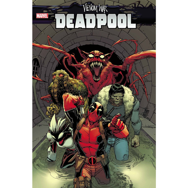 Deadpool may be trapped in a city full of zombified symbiotes and symbiotized zombies, but he's always got old friends to call on when he's against a wall! He'll face the madness with monstrous allies like Frankenstein('s Monster) and Man-Thing - not to mention Silence, Princess...and another surprise guest star you will NOT see coming!