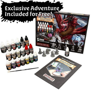 Nothing brings a Fantasy World more to life than the creatures that inhabit it. Playing with painted miniatures will level-up your whole role playing experience as it brings your adventure to life on the tabletop in front of you. This epic paint set contains not only a full party of 5 fantastic, highly detailed miniatures it also includes a Starter Brush and 19 of the most essential colours you need plus 1 brush-on-primer (20 paints in total) to paint your party of heroes and heroines fighting the foul monsters, dragons, and evil creatures lurking in dark dungeons or above ground.