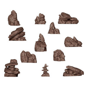 Set of realistic 3D-printed resin pieces that imitate rocks and rock formations, ideal for adding relief and character to the bases of your miniatures, dioramas, or gaming tables. Perfect for recreating mountainous landscapes, rugged terrain, or combining with ancient ruins, adding a touch of authenticity and detail to the terrain.