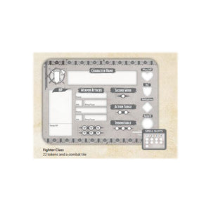 The combat tile provides a place for you to keep a running total of constantly changing statistics like character health and resources, all without dirtying your character sheet with eraser marks.