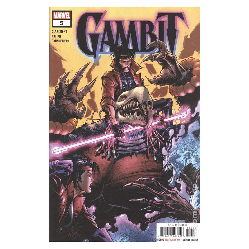 ALL GOOD THINGS, MON AMI… GAMBIT and 'RO must do battle with a trio of intergalactic bounty hunters as Remy finds himself in the crosshairs of competing forces looking for revenge…and a payday! LILA CHENEY rocks the galaxy with an explosive encore! All good things must come to an end…and will this spell the end of Gambit's partnership with 'Ro and with his love MARISSA?